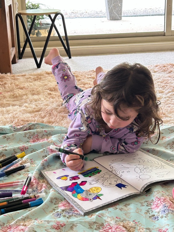 Georgia slept on the couch for about half an hour, which gave me time to colour in with Ana