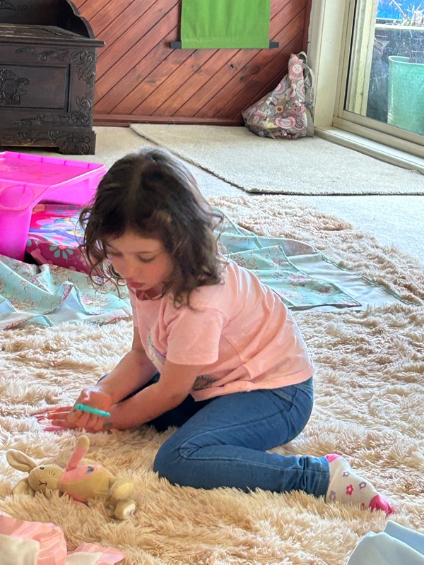 She eventually spread out as more and more of the craft supplies were added to her “ work space “