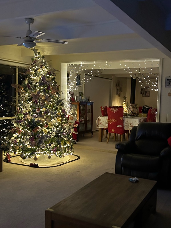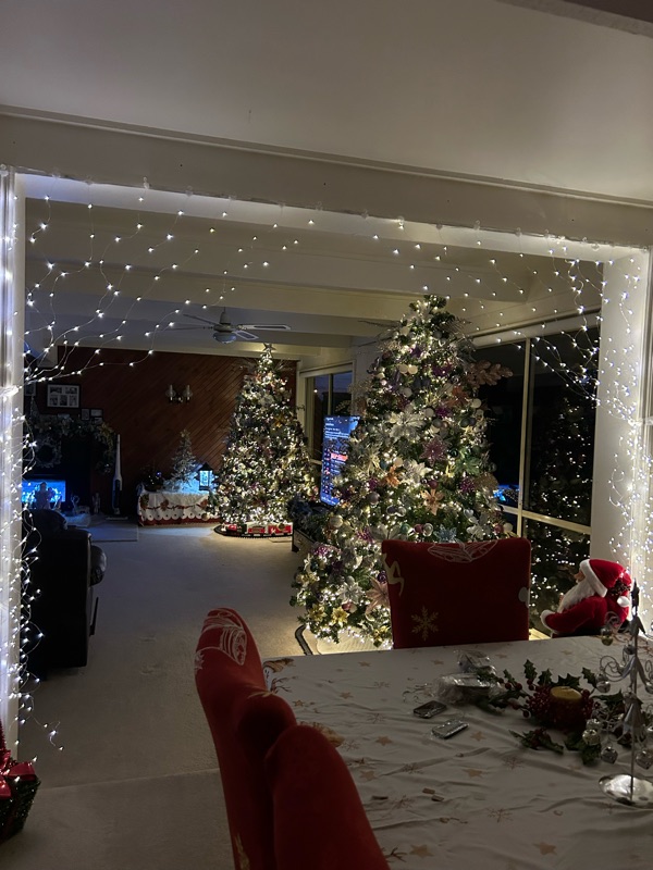 We moved this couch to this corner because the new Christmas trees were so big we couldn’t get past it with the chair being where it was.