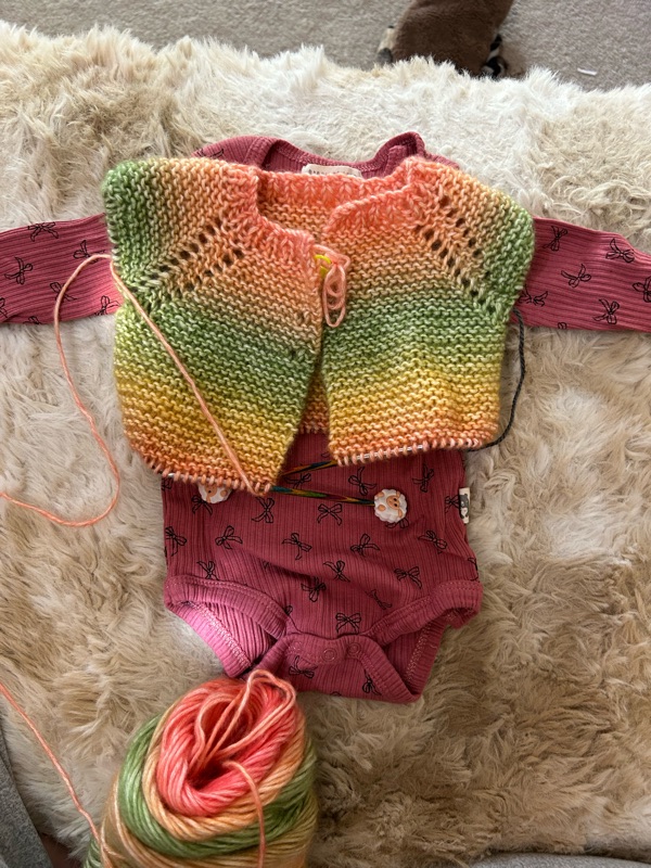 And finally I used one of Georgias body suits to measure the cardigan I’m making