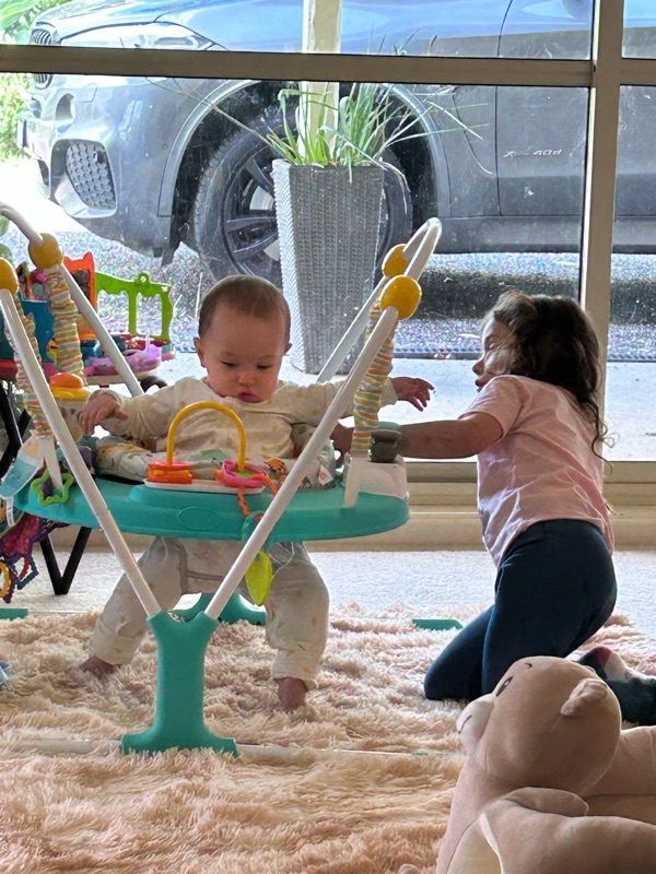 Ana was showing her sister all the different toys we have added for her to play with