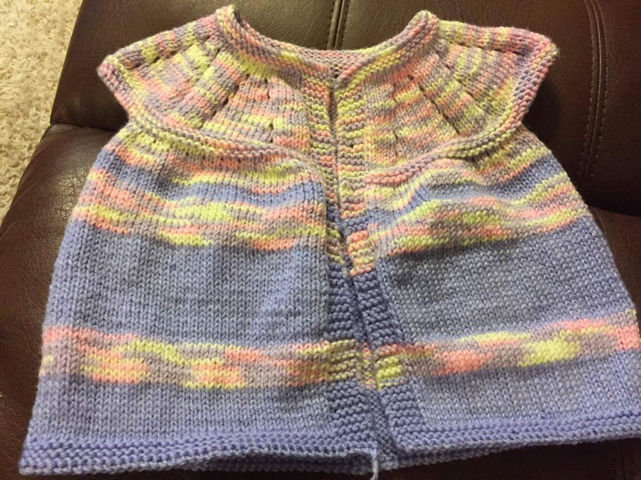 The little cardigan turned out very sweet, too bad it was too small for your darling granddaughter. I like your autumn yarn!