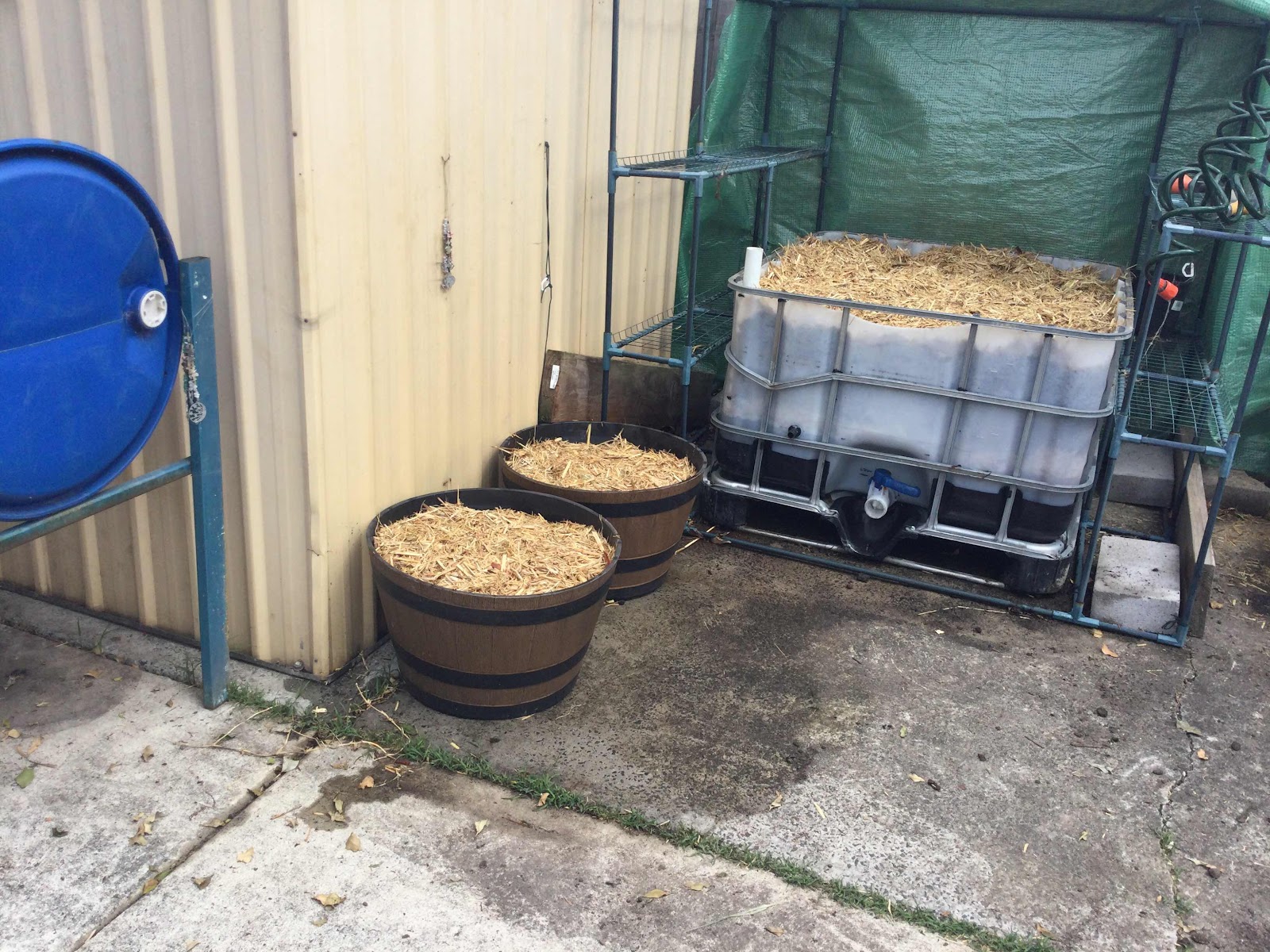 This second big black pot has pumpkins and so does the white pot I put that metal stand over it as I nearly toppled it over while watering