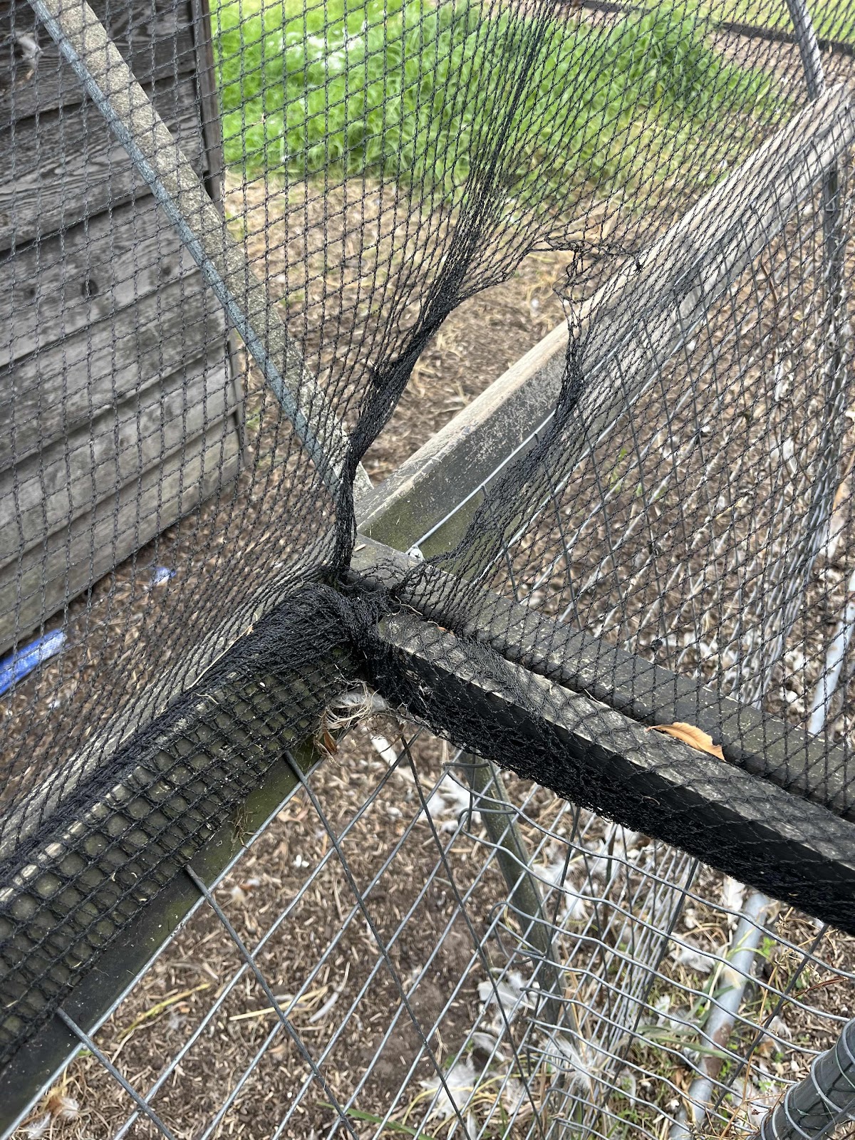 Two years and no fox kills. The thick wire around the coop and in the ground kept them out. But this one climbed up past the wire and chewed the black netting