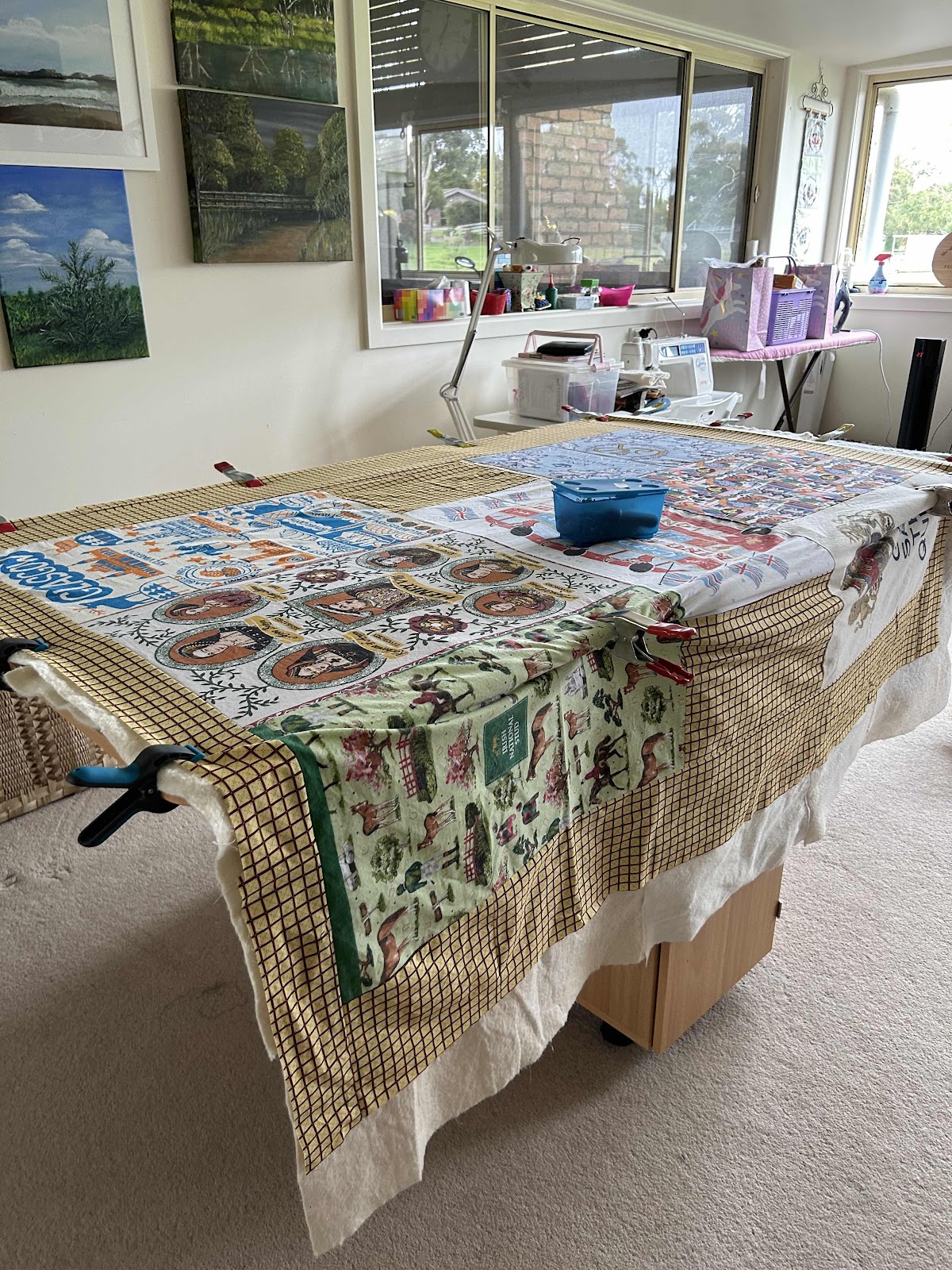 The quilt is on the table and waiting on the pinning