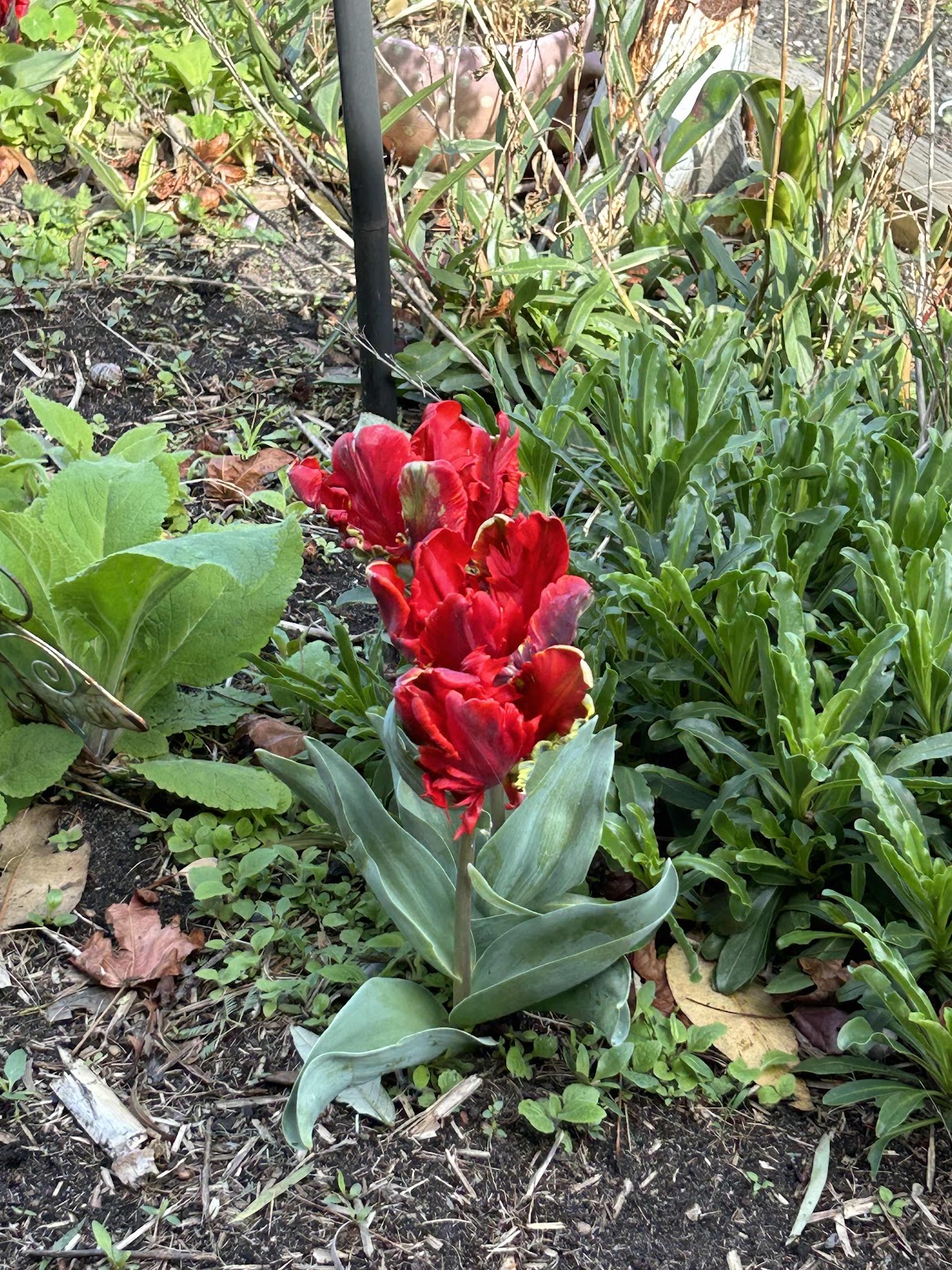 ReplyDeleteThe purple tulips must have a good strong stem to not get flattened (shame about the loo) do the red ones have feathered petals or does it just look that way?