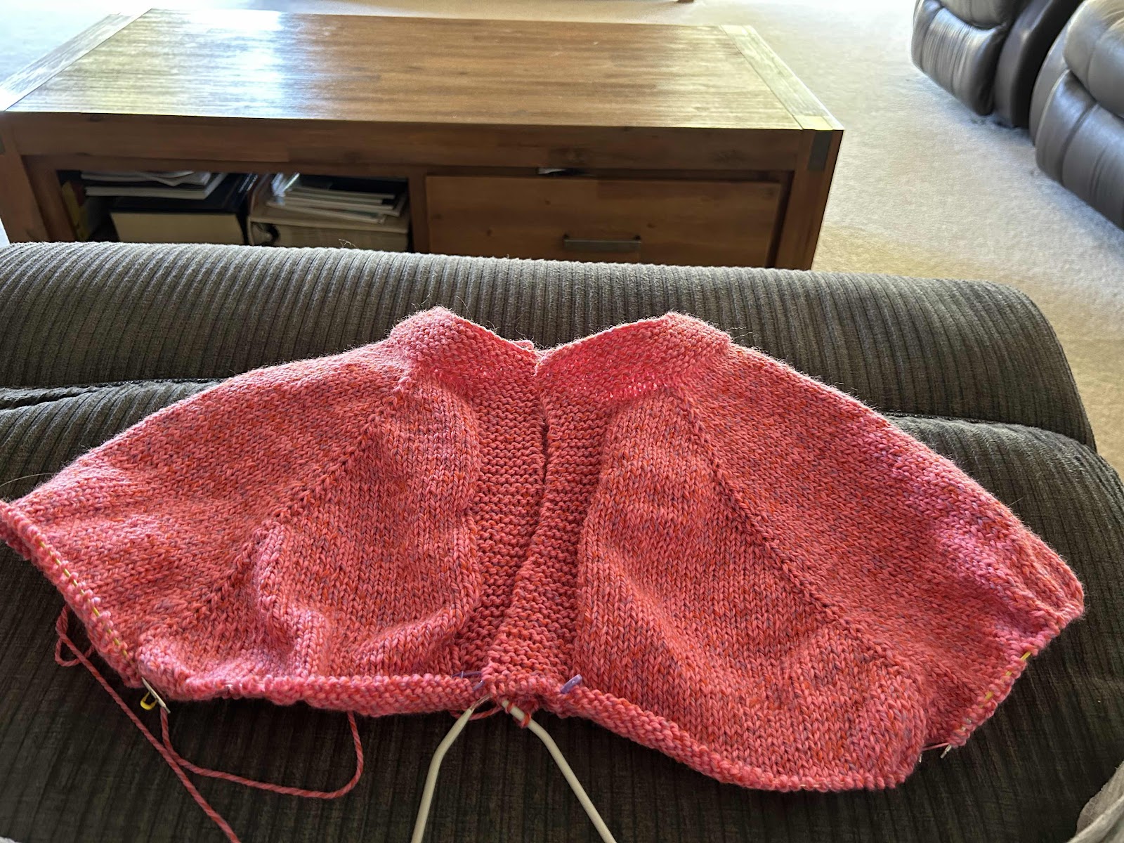 When the body is finished I just choose a sleeve add the correct size needles and start knitting