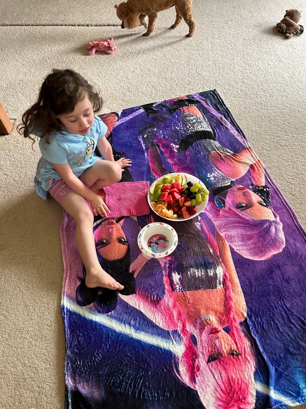 as you can see, she’s using the demon hunters blanket to sit on for her picnic