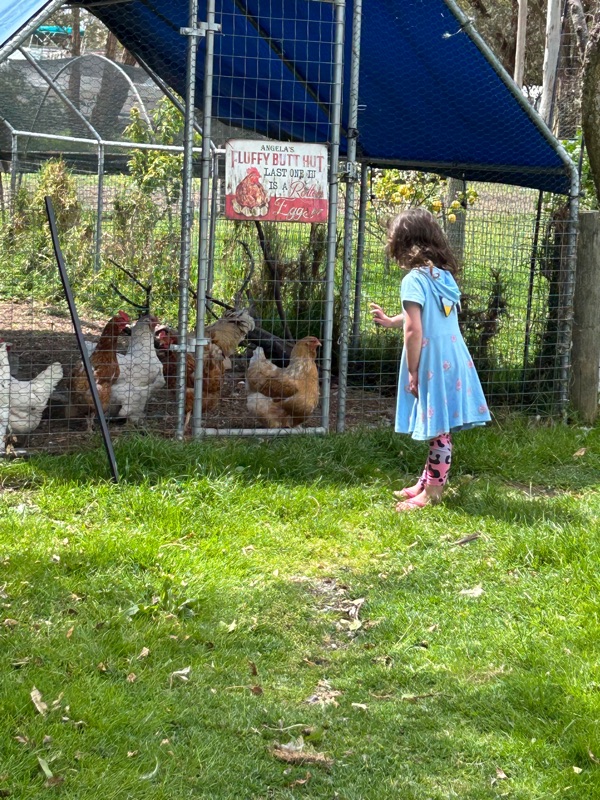 grandpa went to the farm yesterday and won’t be back until tomorrow. As I don’t like to go out at night when I’m home alone I didn’t let the chickens out to roam. The have plenty of room in the coop. As long as they have food and water they’re happy