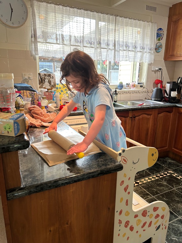 most of the finished cookies went home. Grandma didn’t have any icing sugar to decorate but her mummy said she did.