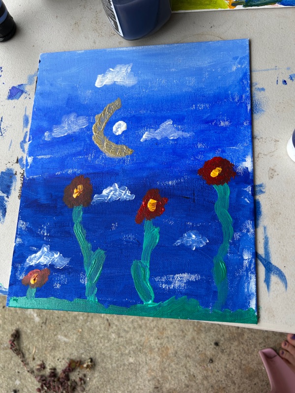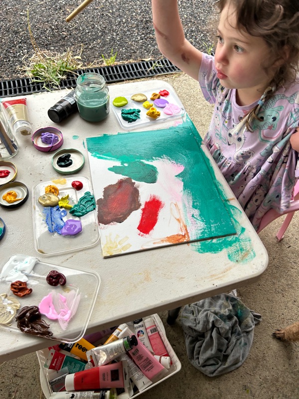I had promised them some painting time I purchased some canvases for them to use I loved not only watching them create art, but also listening to their conversations