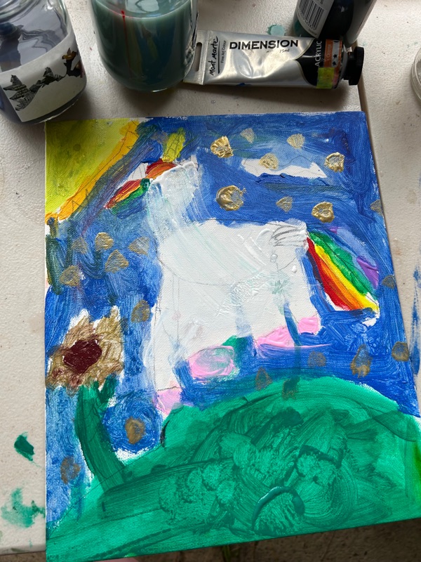Breanna painted a rainbow unicorn she wanted to draw it first, then painted it