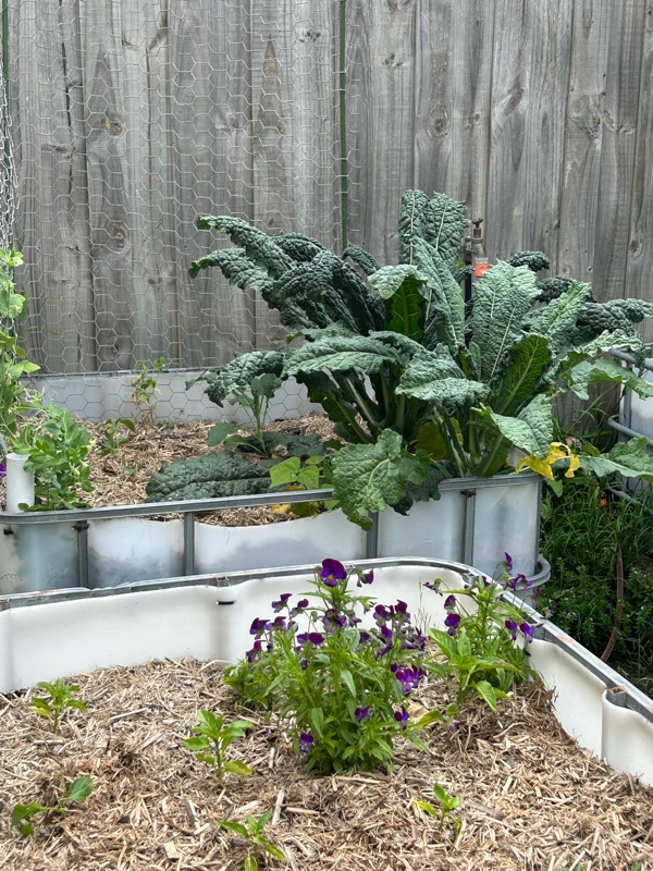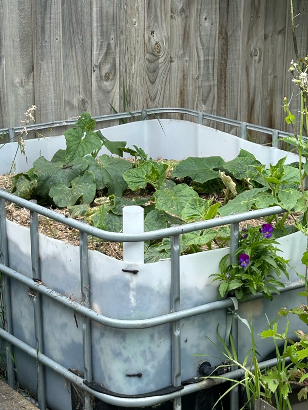 These are the cucumbers I planted earlier. I actually harvested one and ate it while planting. A nice snack