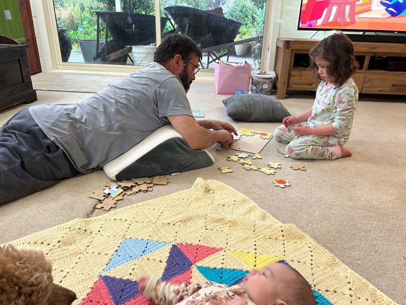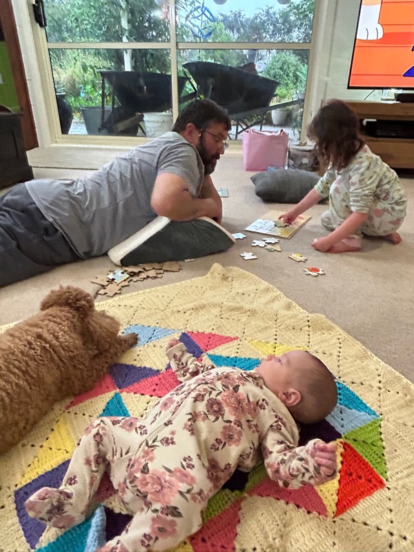 Well done! There should be an achievement award for the stress, even of a happy baby plus her older sister! They seem so happy at your house.