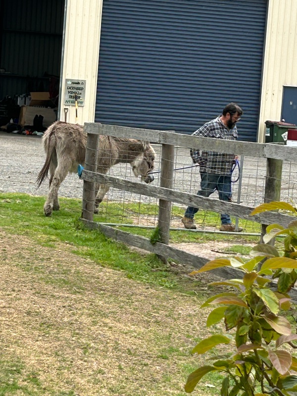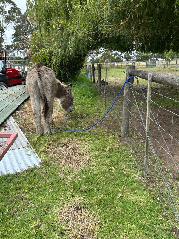 While we were struggling with the fine nets, Dobby was tasked with chomping down the grass along the side of his paddock