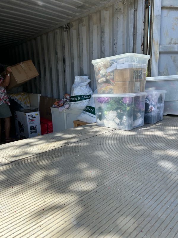 Helping was basically putting boxes into a van to transport it all to where it will be stored until they find a place