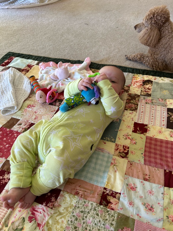 ReplyDeleteShe's holding her own bottle! I remember that. And the dog is involved in her care. This is lovely to see.