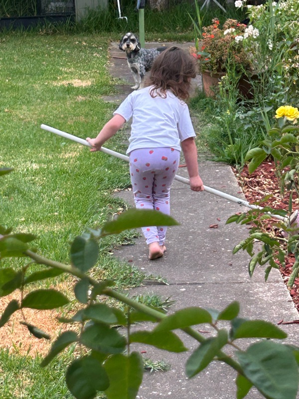 While they cooked. And grandma cleaned she sat with grandpa and watched paw patrol.
