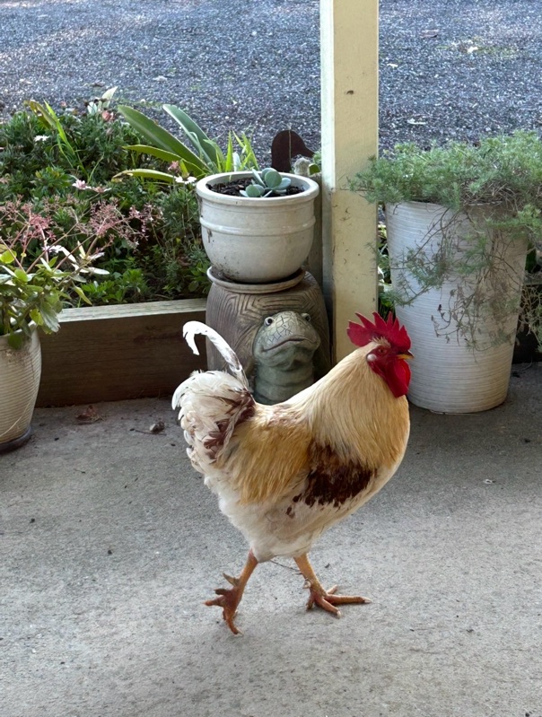 Chicken are definitely the great grandchildren of dinosaurs because this one thinks he’s huge and mighty