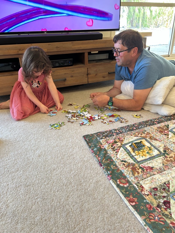 In the afternoon grandpa came home to play with Ana. Ana actually asked me to ring him, he was already coming over once he got home and delivered the auto parts to the boys
