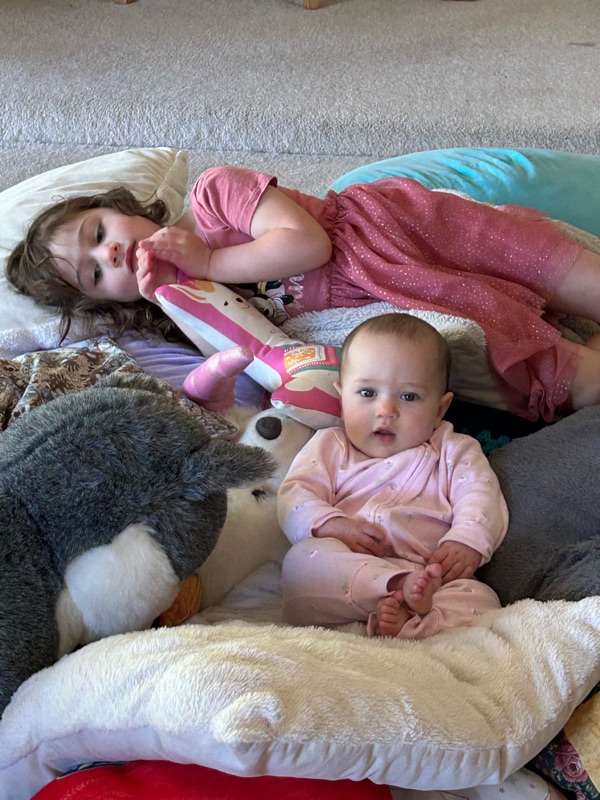 When her girls are here, that’s what she calls Melody and Brianna, they make this big nest and settle in to watch TV