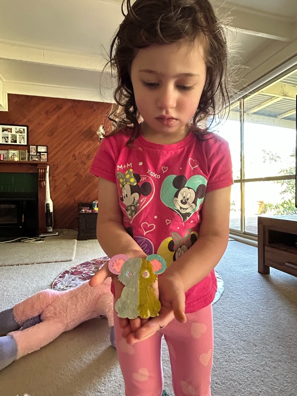 I helped Ana colour the last of the wooden animals. She was very proud of this one. I had to take a photo and send it to mummy