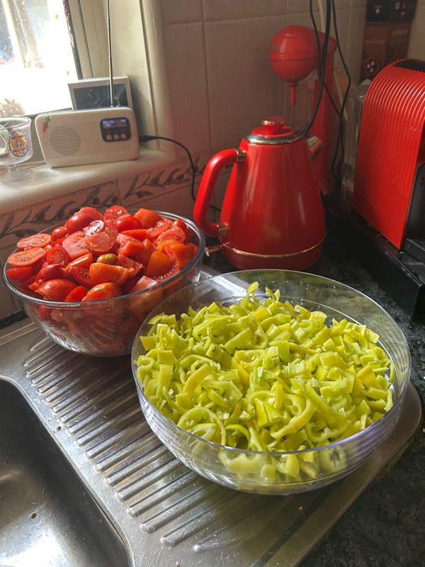 The peppers and tomatoes I cooked this morning