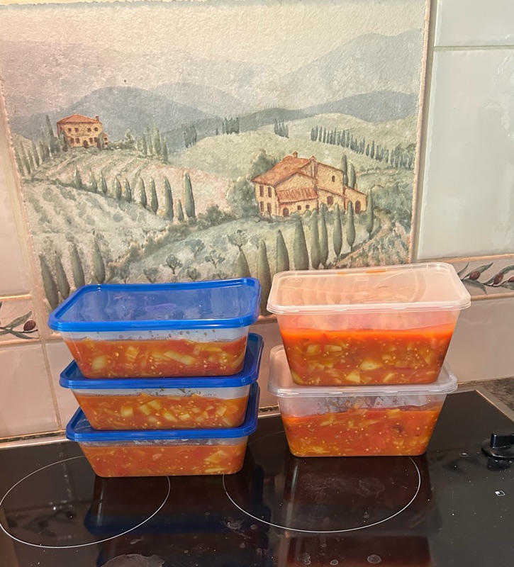 Once it was cooked down it filled all of these containers