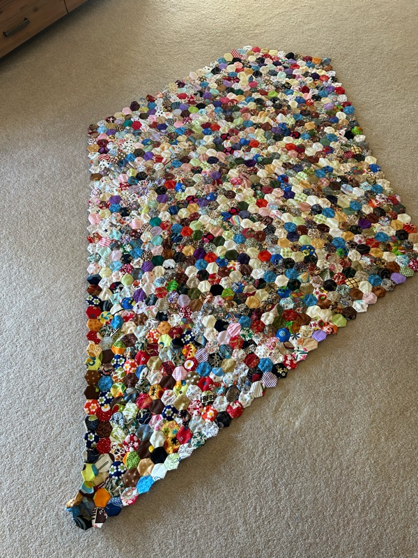 I’m back to getting the hexis ready to sew into the quilt top