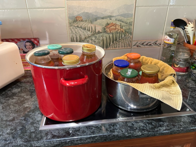 Once I had finished chopping as many tomatoes as I could I started the water baths I was beginning to get very sore legs and ankles standing all that time