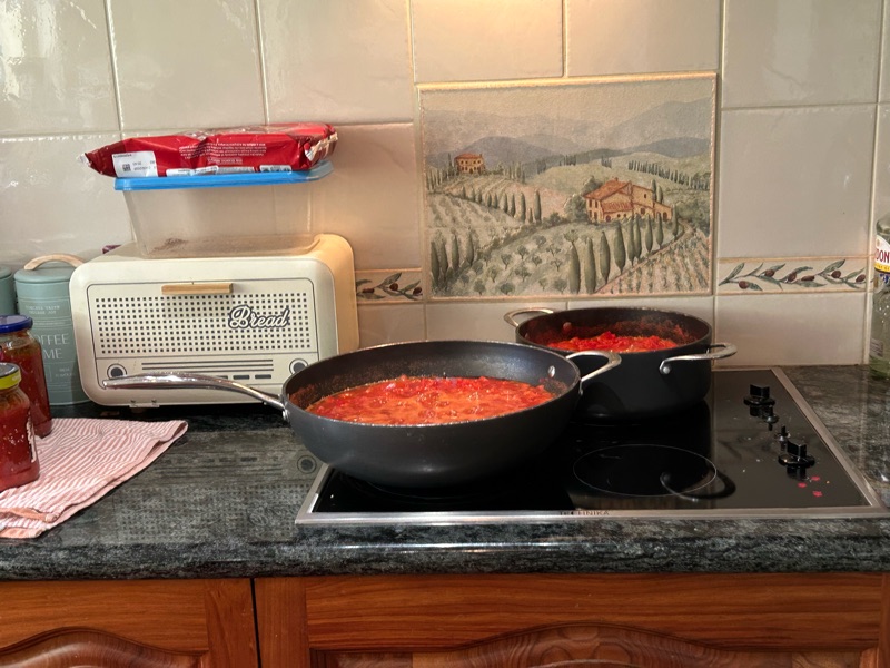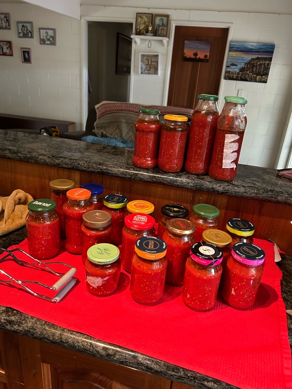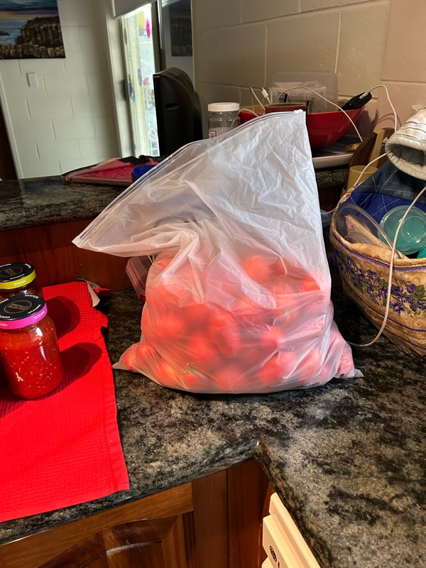 Tomorrow I’ll get hubby to pick all our peppers from the garden. I’ll chop those up and add them to the tomatoes.