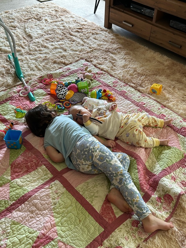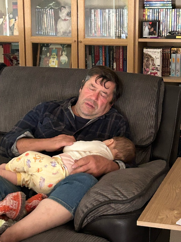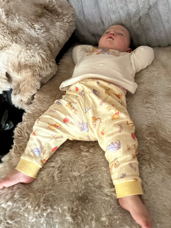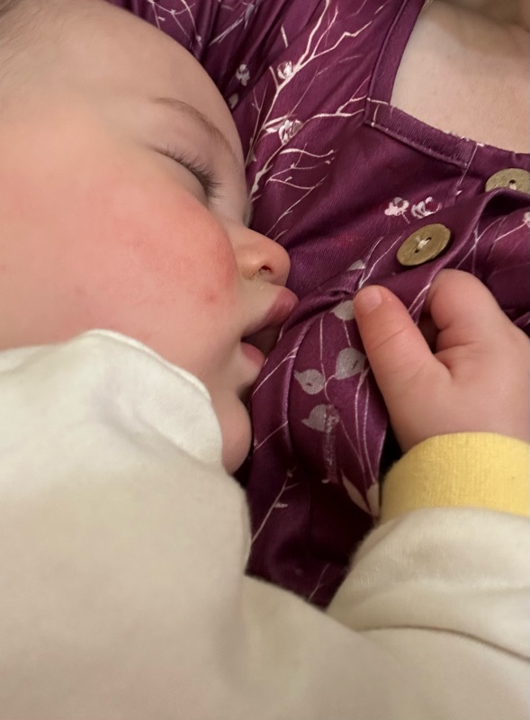 It’s still hard putting Georgia down once she’s asleep. Here she it literally hanging on to me