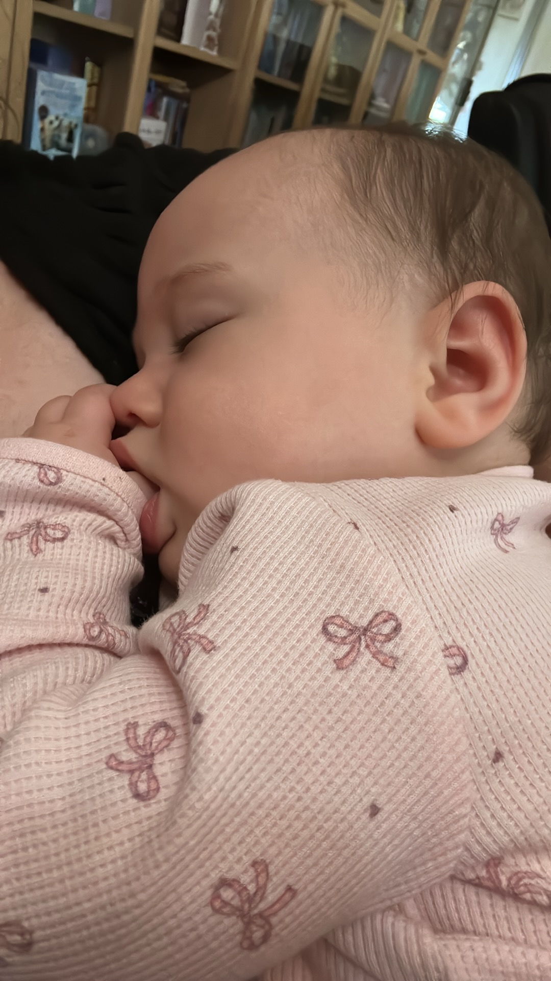 This is exactly the way her cousin Brianna used to sleep. Once she’s fast asleep her thumb comes out