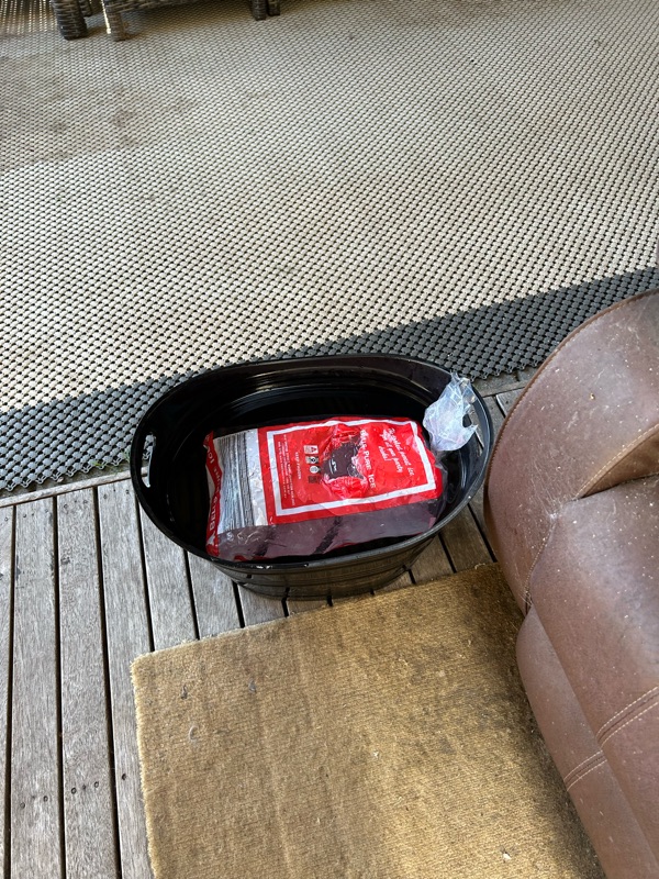 And finally an extra tub of water with the bag of ice. They all drink from this tub. Cats and dogs. Even Trixie, and there is water inside for her and Bella. The two that come in. Teddy and Agatha seem to just want to be outside