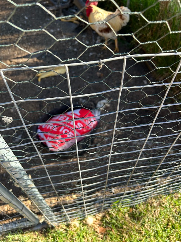 This is what greeted me while I was giving them fresh water. I grabbed a new water container and filled it right by the back fence. This was it will stay in the shade all day