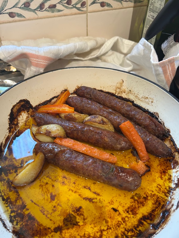 dinner. Hubby had already taken some out. Sausage is home grown, it looks greasy in the picture but it really wasn’t